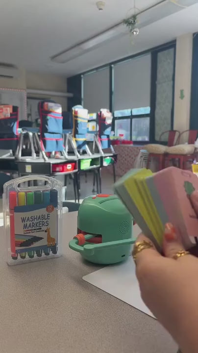 متعة بدون شاشات: لا تطبيقات، ولا شاشات، ولا إعداد معقد — فقط شغّله، اختر بطاقة، وشاهد الإبداع يبدأ.