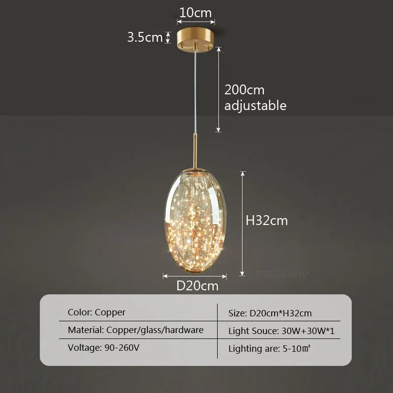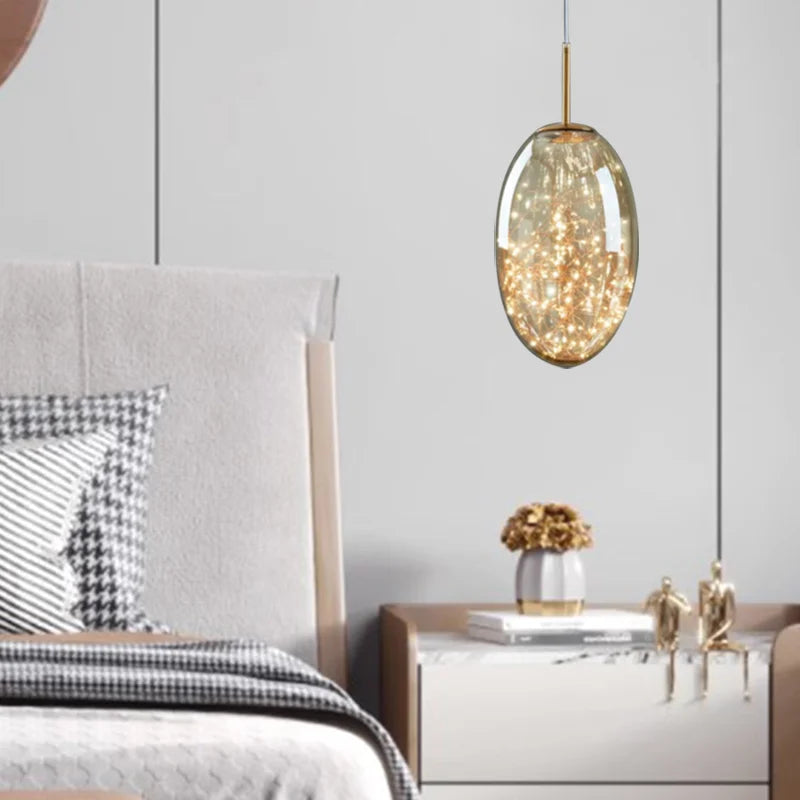 Marisol Retro LED Pendelleuchte Gold Bernstein Glas Schlafzimmer -